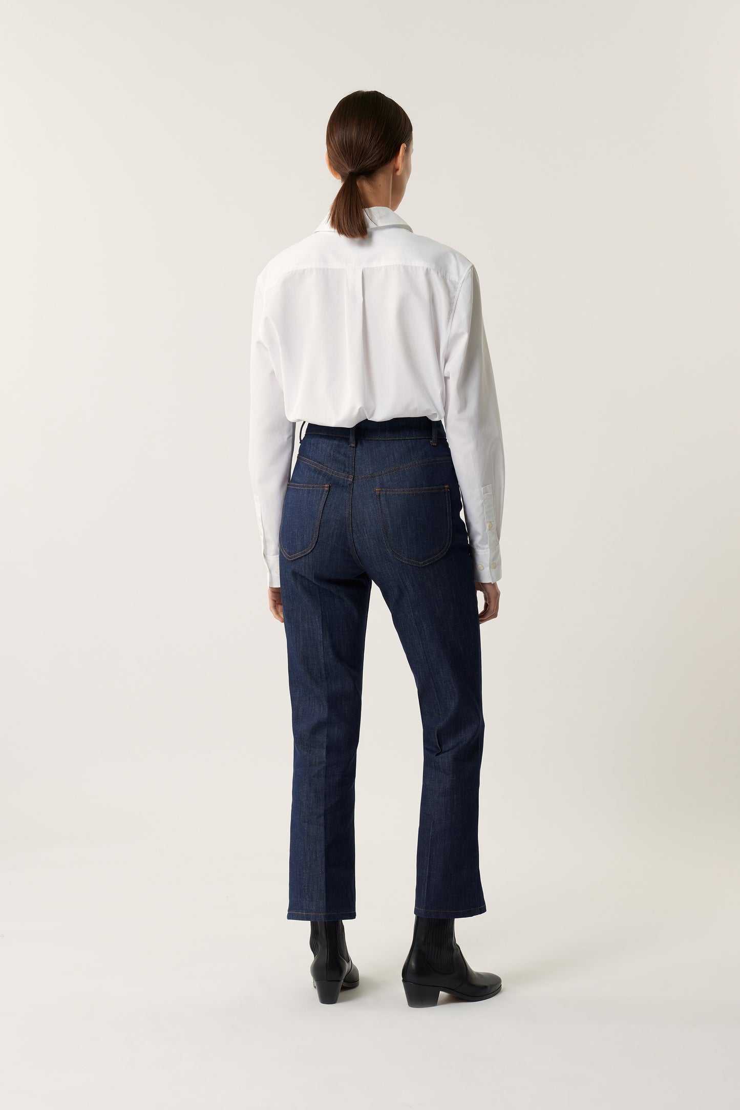 FRANCISCO is our timeless jeans with a "trumpet" cut. Designed to be fitted, flared at the lower legs, and cropped at the ankle. It offers a sculpted 70s-inspired silhouette, timeless and casual.